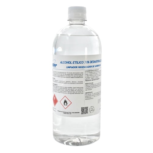 \nAlcohol etílico 70% desnaturalizado: Desinfectante de superficies. Es un limpiador y efectivo antibacterial formulado para proporcionar una acción rápida frente a un amplio espectro de microorganismos. Se puede aplicar directamente sobre distintos tipos de superficies duras como mesas, artefactos no eléctricos, sillas, manillas.
